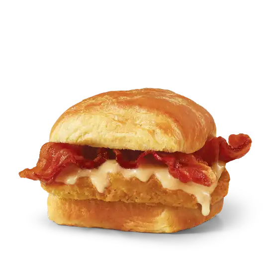 Juicy white meat, lightly breaded and seasoned, with Applewood smoked bacon and maple butter on a flaky croissant bun, sweet, savory, and seriously delicious.